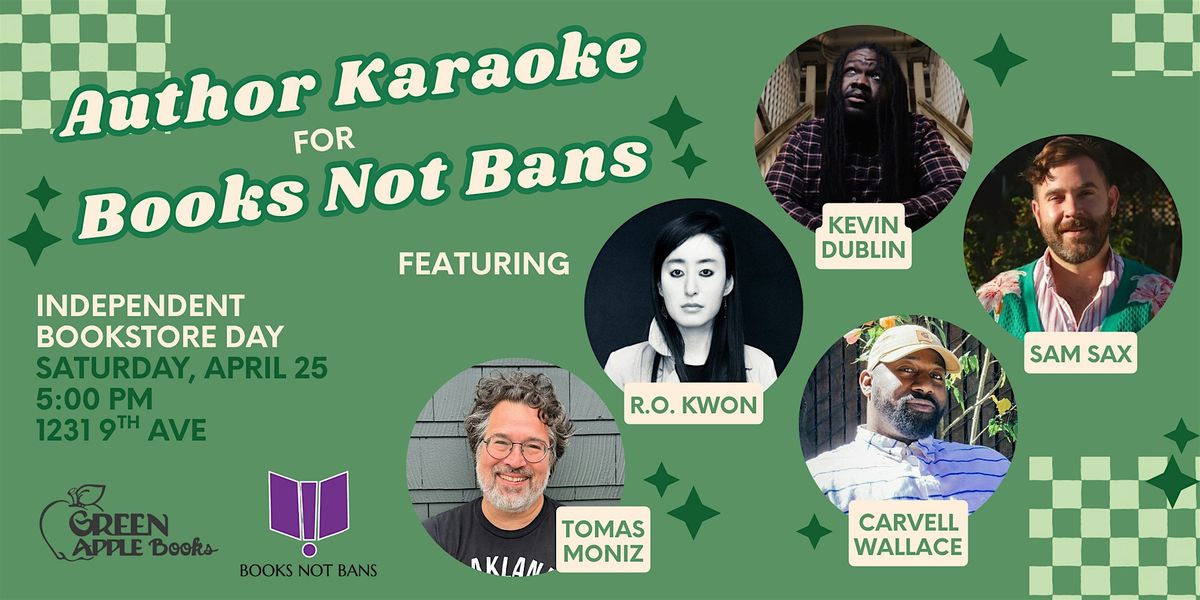 Join us on Independent Bookstore Day--Saturday, April 25--for a karaoke party featuring some of your favorite authors benefiting one of our favorite SF-based organizations, Books Not Bans, which sends books by and about LGBTQIA+ people to those most affected by book bans in the US!