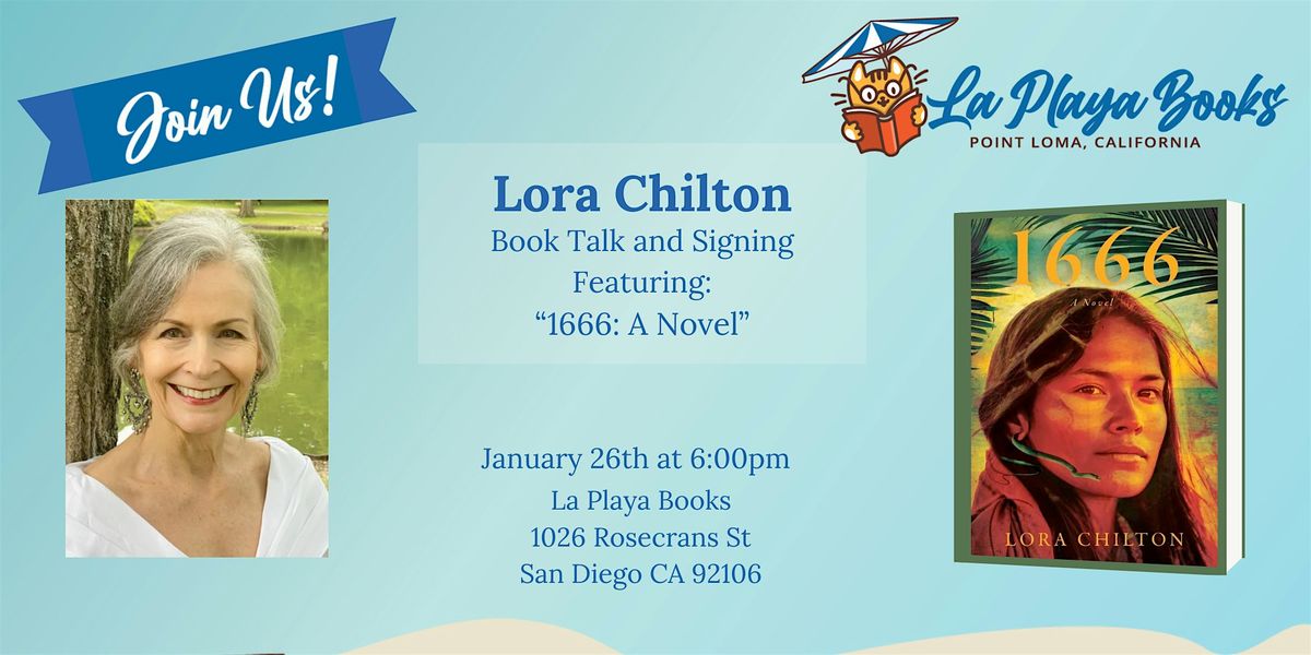 La Playa Books welcomes author Lora Chilton to our bookstore! Dive into the world of 1666: A Novel with us. It's a great chance to chat, get your book signed, and hear about the history of this gripping story.
