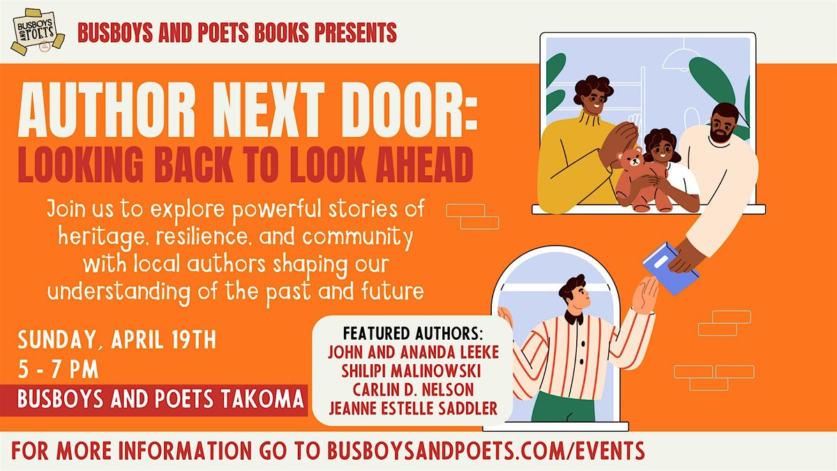 On Sunday, April 19th at Busboys and Poets Takoma, join us for Author Next Door: Looking Back to Look Ahead, the first installment in our rotating DMV-wide celebration of community storytellers.