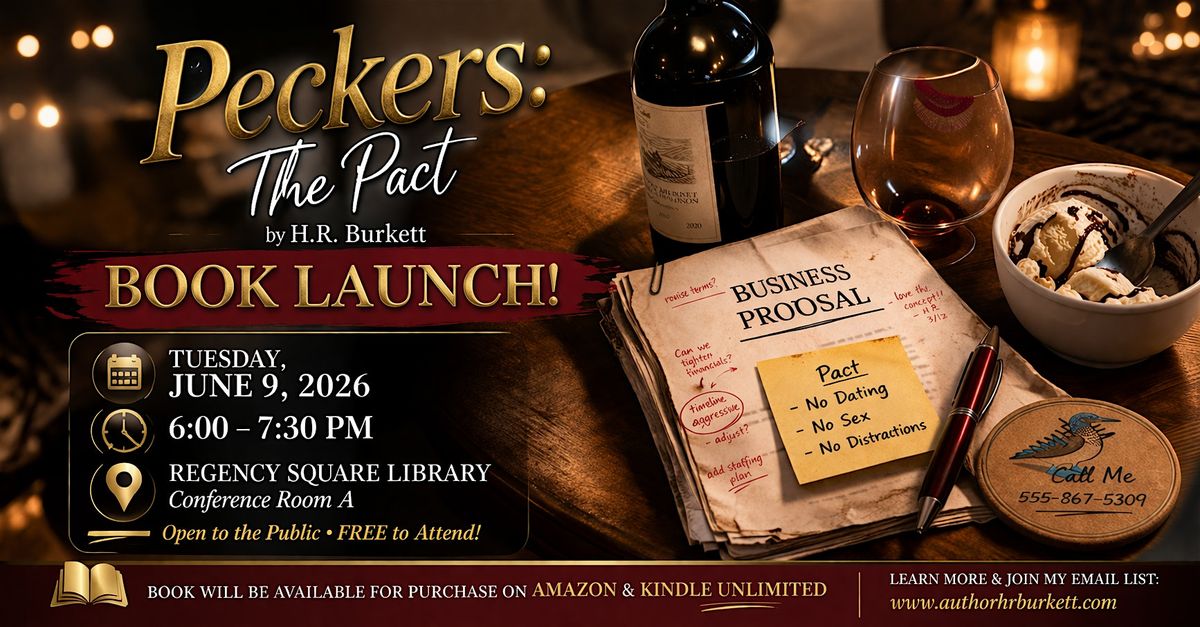 Join local author H.R. Burkett for a special Author Talk & Book Launch celebrating the release of Book 1 in The Peckers Series—a contemporary romance series centered on friendship, ambition, and the complicated relationships that unfold when the rules start to break.