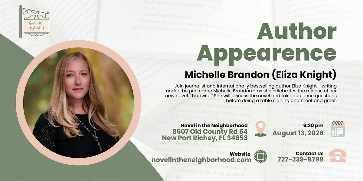 Join journalist and internationally bestselling author Michelle Brandon (Eliza Knight) as she celebrates the release of her new novel, "Tradwife." Eliza will discuss the novel and take audience questions before doing a table signing and meet and greet.