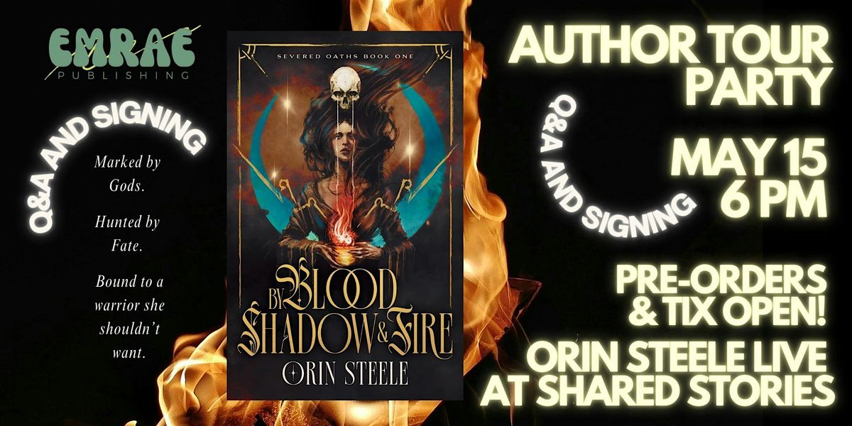 Orin's highly anticipated debut novel, By Blood, Shadow, and Fire releases April 28th! By Blood, Shadow & Fire is a sweeping fantasy romance about fate, forbidden longing, and the kind of magic that demands everything.
