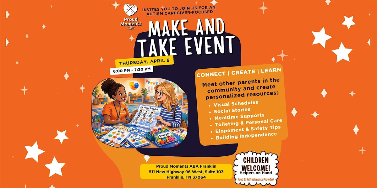Join us at Proud Moments ABA in Franklin for a community-focused Make & Take Night designed specifically for parents of children ages 2 through young teens.