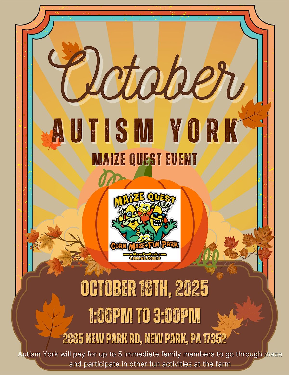 Get lost in the fun and excitement of Autism York's October Maize Quest Event, where you can enjoy a thrilling maze adventure!About this Event