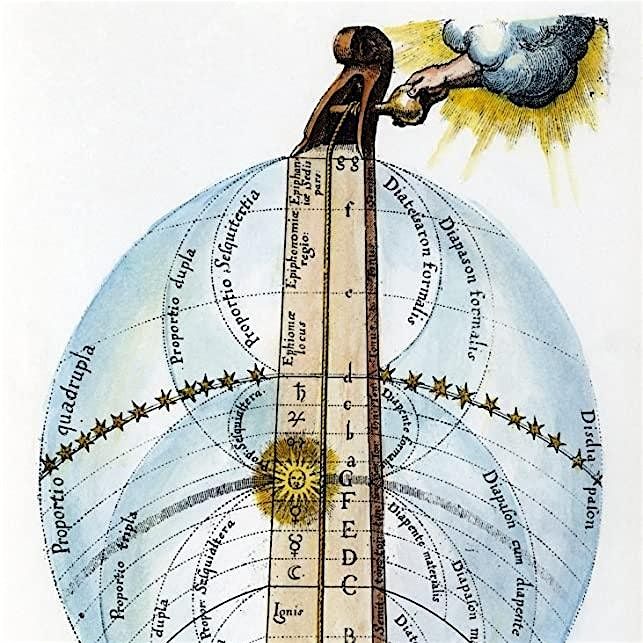 The image is a detail from "Divine Monochord" (Monochordum Mundanum) an illustration in Robert Fludd's Utriusque Cosmi, published in1617.