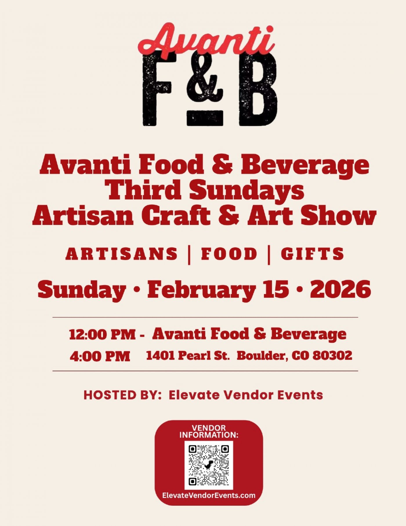 Shop handcrafted goods, art, gifts, and unique finds while enjoying incredible food and drinks from Avanti Food & Beverage, all in the heart of Boulder.