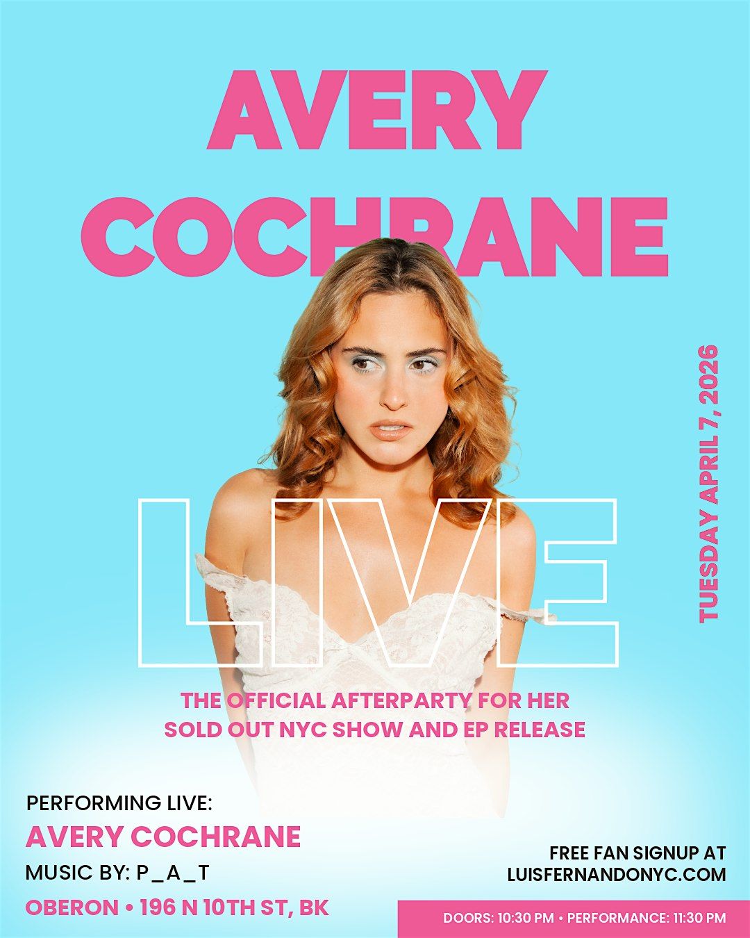 AVERY COCHRANE PERFORMING LIVE! THIS IS NOT A DRILL! AVERY COCHRANE PERFORMING LIVE AT HER OFFICIAL AFTERPARTY FOR HER SOLD OUT NYC EP RELEASE SHOW!