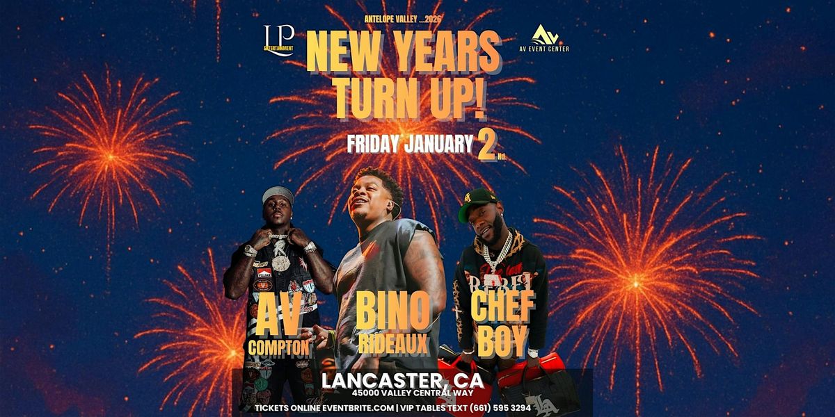BINO RIDEAUX, CHEFBOY & COMPTON AV LIVE AT AV EVENT CENTER. GET YOUR TICKETS B4 THEY SELL OUT ! VIP TABLES TEXT 661 595 3294! HAPPY NEW YEARAbout this Event