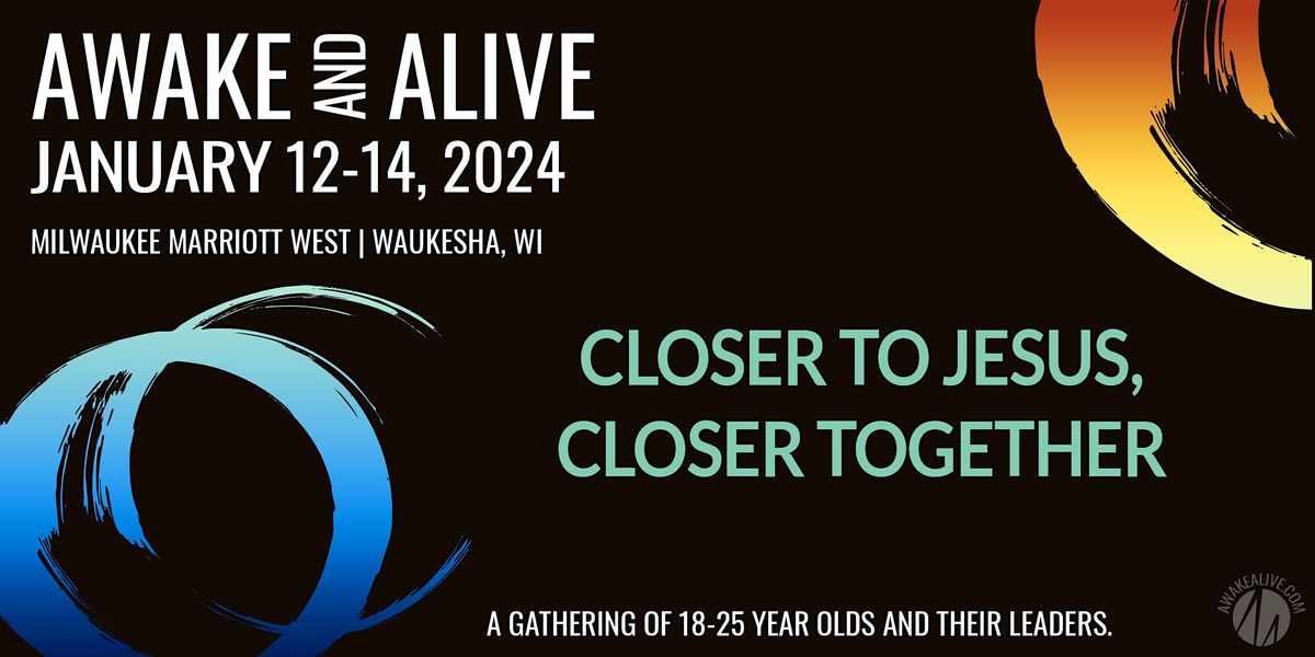 Young adults and professionals 18-28, we are excited to announce that Awake and Alive 2024 will be held at the Milwaukee Marriott West in Waukesha, WI! This three day event brings young people from around the region and the country together to enjoy Christian community, interviews, discussions, devotions and breakout topics. Best of all, are the three times for community groups to get to know new people while digging deeper into the topics of this year's conference. Thanks to generous donors and sponsors, we are able to offer amazing early bird rates which includes conference materials, snacks, breakfast and lunch on Saturday, and entertainmen on Saturday evening. So if you are in your late teens to late 20s, mark your calendars and start making plans to join us for three days of growing in your relationship with Jesus and with your generation at Awake and Alive 2024!!