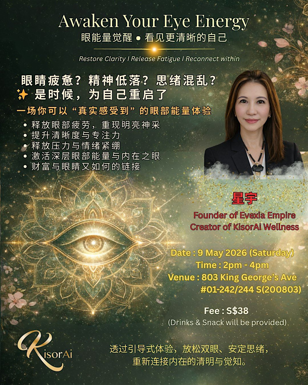 Are your eyes feeling tired? Your mind foggy?your emotion unsettled? It's time to pause,reset and reconnect. Join me for deep eye experience