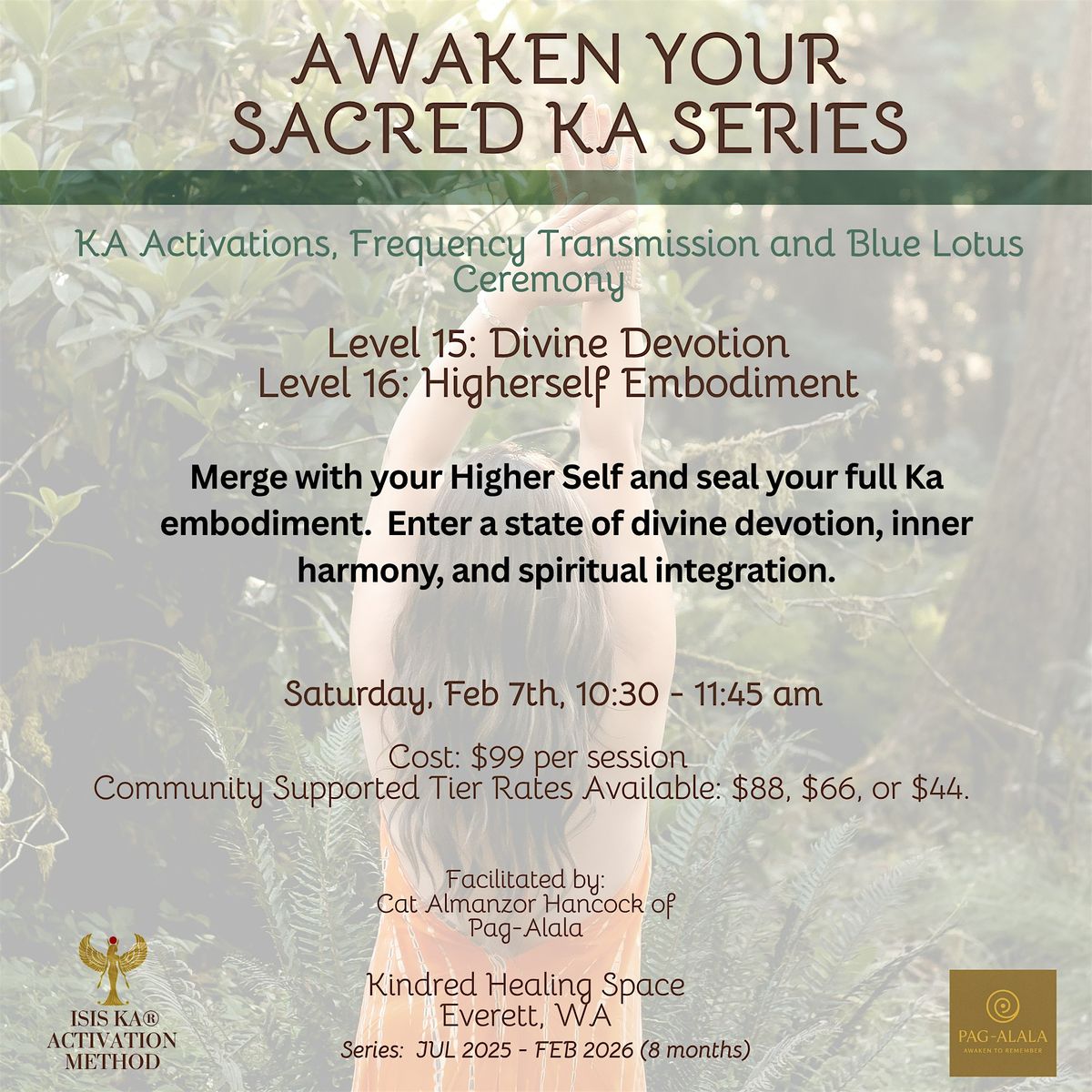 The Isis Ka® Modality is powerful for activating more than healing. While its nature is activating, a byproduct is healing. There are 16 Ka Levels. We will be activating dual levels along with Isis Ka® Frequency Transmission, and Blue Lotus Ceremony.