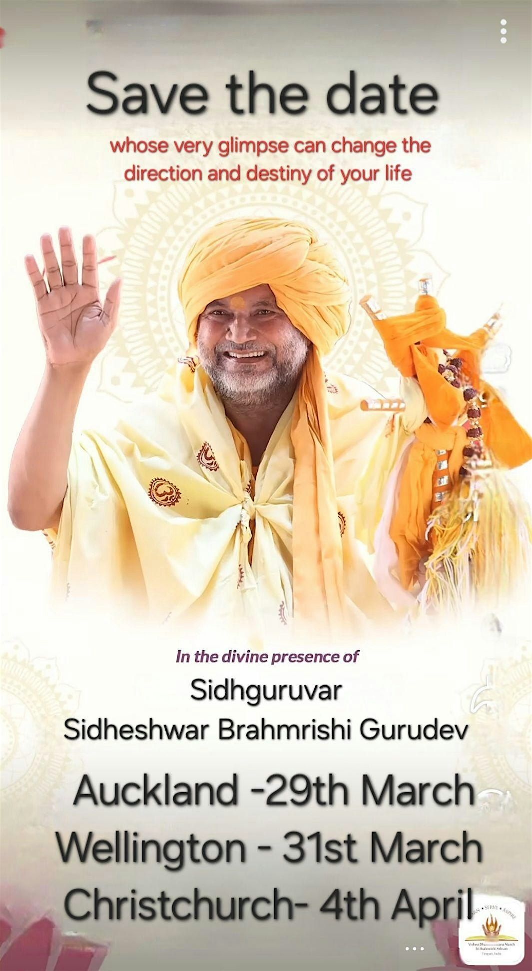 Gurudev Ji will be radiating his divine Darshan across Auckland, Wellington, and Christchurch, offering seekers a once-in-a-lifetime spiritual experience filled with peace, grace, and inner transformation.
