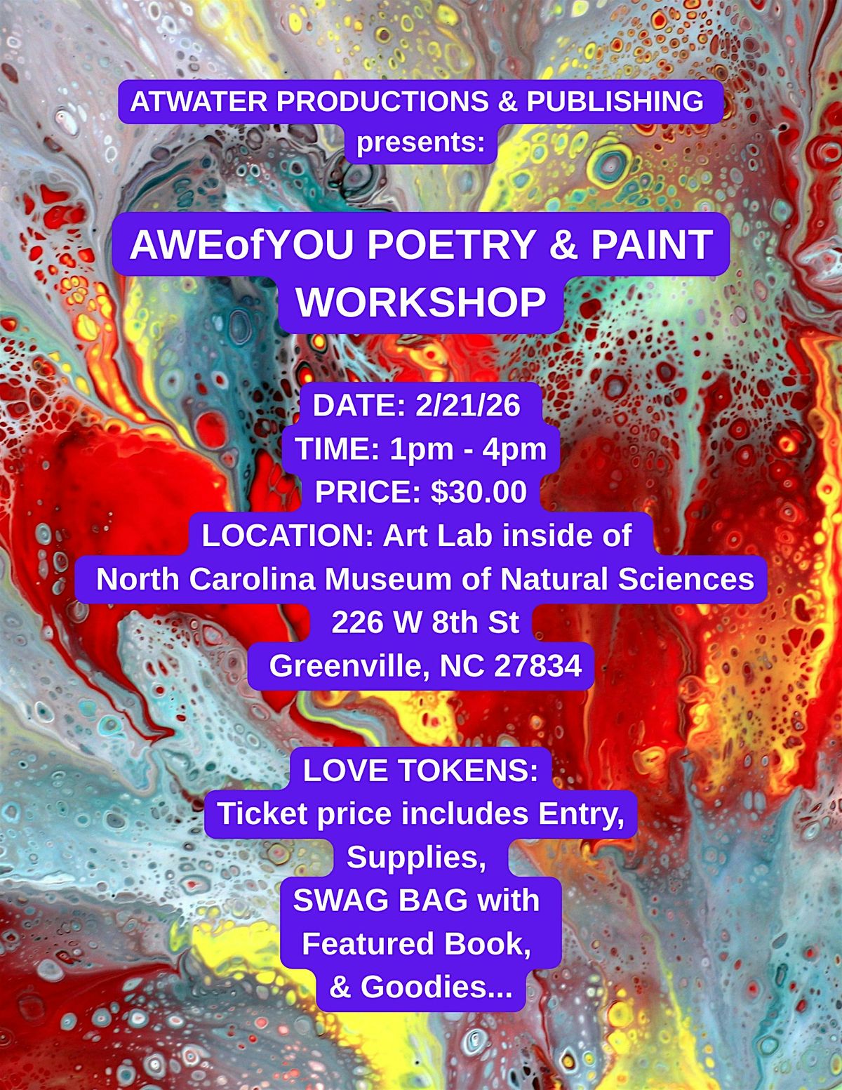 Come vibe with us in person for a creative day where words and colors come alive. Whether you're a poet or a painter (or both!), this workshop is all about expressing yourself freely and having fun. Bring your passion, some good energy, and let’s make something awesome together. Don’t miss out on this cool chance to mix art and poetry face-to-face!!!
