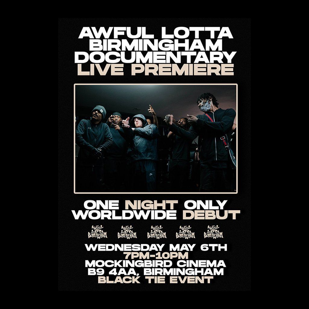 One night only.The worldwide debut of the long anticipated Birmingham Grime documentary, Awful Lotta Birmingham: The Documentary.