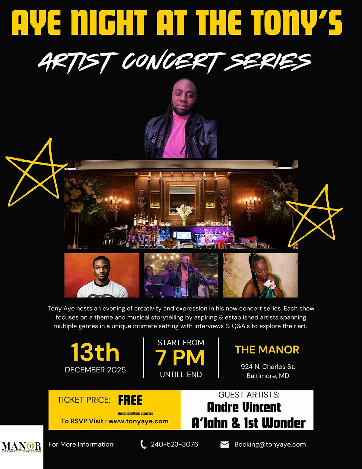 This event is part of the AYE Night At The Tony's series, celebrating Tony Aye's 10th anniversary as a recording artist. Join us in marking this milestone year filled with shows, music and video releases, special projects, and more!
