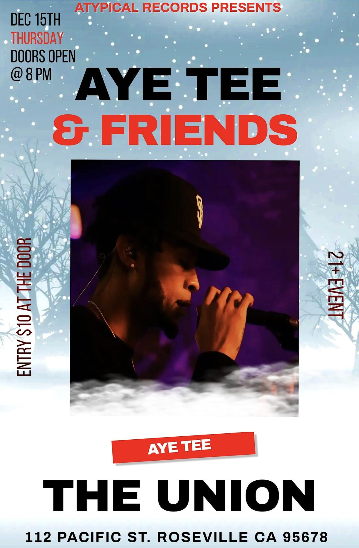 AYE TEE has out together another AYE TEE & Friends for the holidays this year! Live performances, great food & drinks will be served all night!