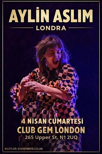 Aylin Aslim Londra konserini kacirmayin. Konser oncesi restaurant bolumunde oturabilir, ucretli yemek ve iceceklerden siparis verebilirsiniz. Konser sonrasi after party'e ucretsiz kalabilirsiniz.