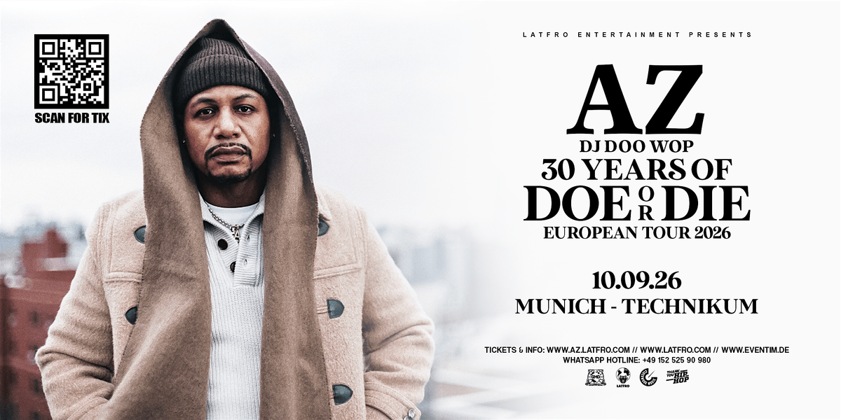 On September 10th, 2026, the legendary AZ brings his Doe or Die 30th Anniversary Tour to Munich at Technikum.