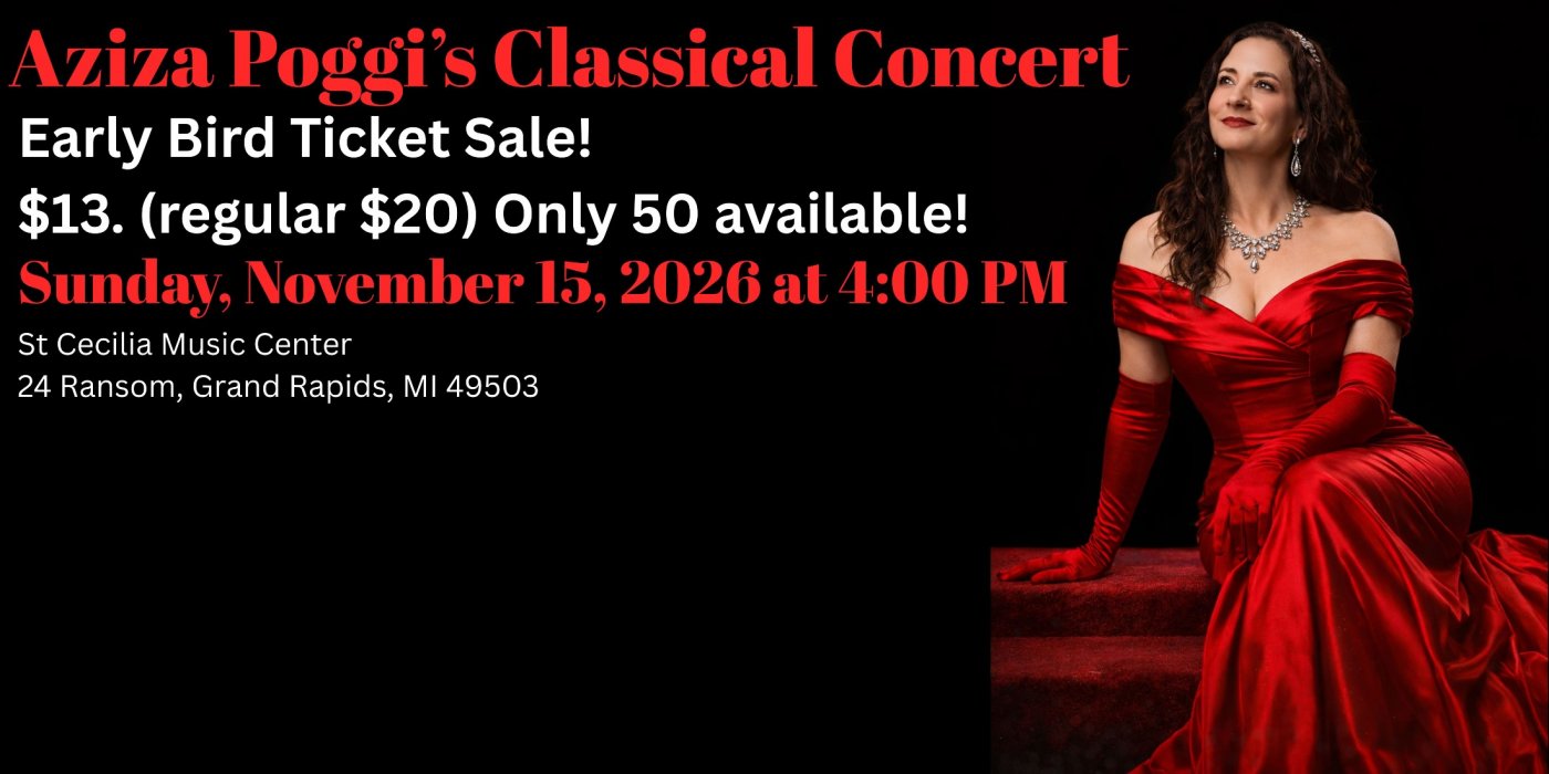 The evening will feature enchanting solo performances and select duets, with guest singers drawn from the West Michigan classical community, including members of the West Michigan Opera Project and other distinguished local artists, as well as a featured student singer from Aziza’s studio. The recital will be accompanied by acclaimed pianist Todd Wilkie.