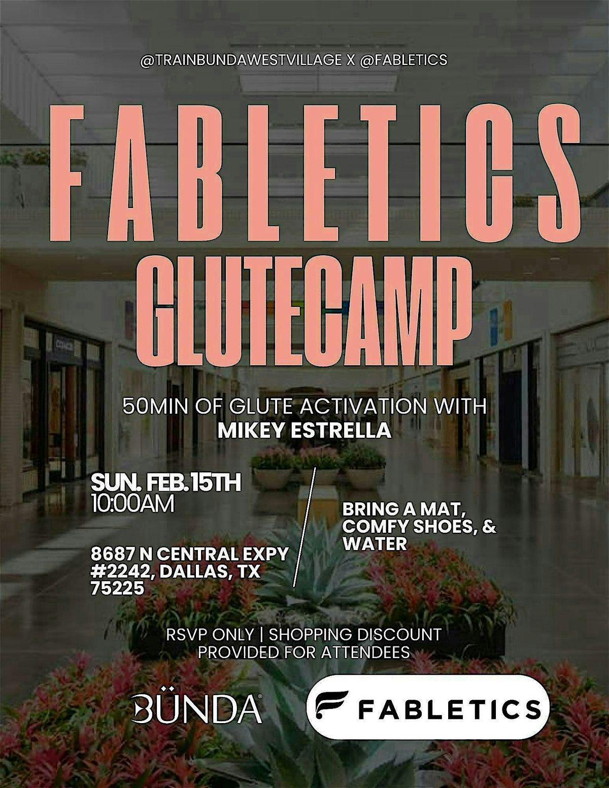 Sweat with us at 10am, shop privately after, and score an exclusive attendee discount Feb 15!