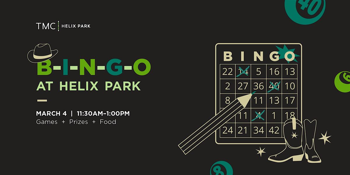 Grab your cowboy hat as we get ready to play rounds of Rodeo Bingo in Helix Hall at the TMC3 Collaborative Building! Join us on Wednesday, March 4, 2026, from 11:30 AM to 1:00 PM as we enjoy the rodeo season in Houston.