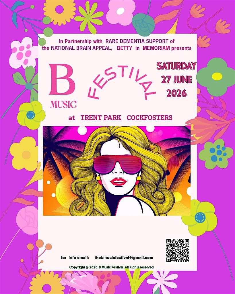 B Music Festival is an annual event in the memory of Bernadett who passed in February 2025 at an early age from Rare Dementia. The event is in partnership with and will make a donation to the Rare Dementia Support of the National Brain Appeal.