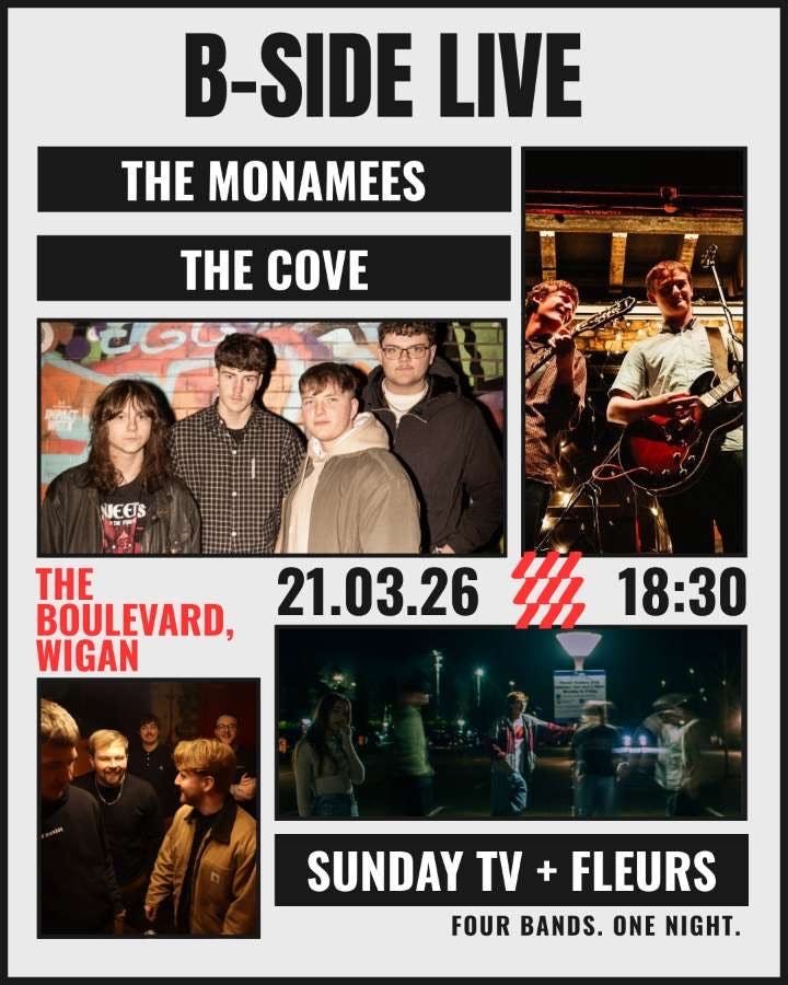 Liverpool based bedroom Indie/Pop band Fleurs and Manchesters Hard indie/rock Monamees bring it on down to Boulevard with local bands Sunday TV and The CoveĀ Disclaimer: