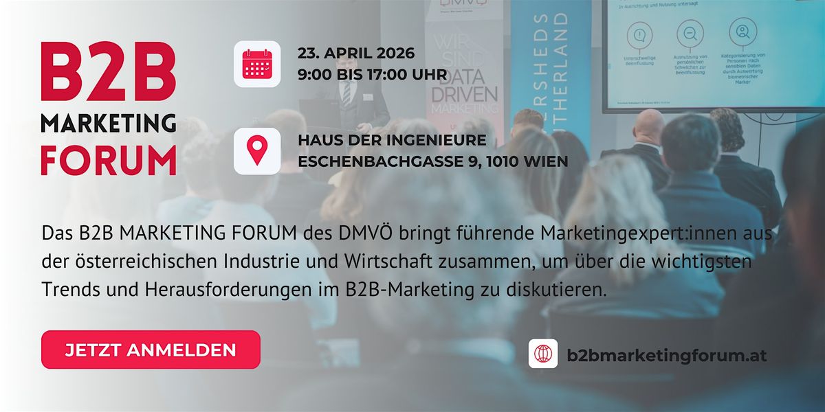 Das B2B MARKETING FORUM des DMVÖ bringt führende Marketingexpert:innen aus der österreichischen Industrie und Wirtschaft zusammen, um über die wichtigsten Trends und Herausforderungen im B2B-Marketing zu diskutieren.