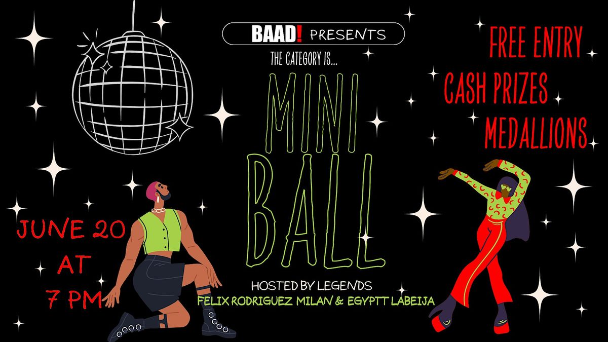 Kiki with us at BAAD!'s 7th annual Mini Ball! Join our iconic hosts/judges Egyptt LaBeija, Felix Milan as fierce competitors battle it out across select categories for cash prizes. To claim victory, winners must impress the judges and showcase their knowledge of ballroom history. If they stumble, the first runner-up will have the chance to snatch the prize from their hands!