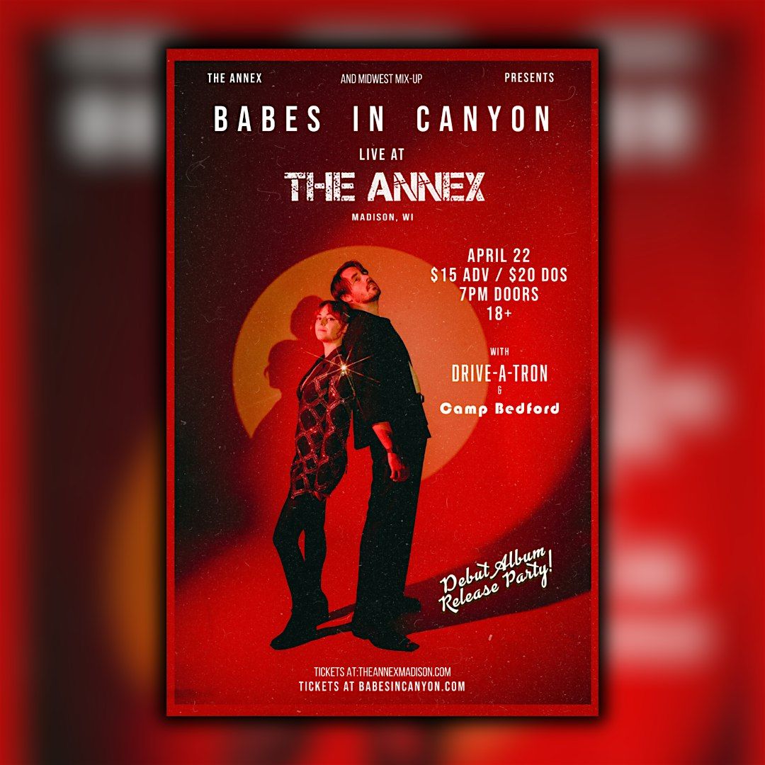 Babes In Canyon(bio)Eloquently blending synth-folk, moody pop, club beats, and soaring vocal harmonies, Babes InCanyon crafts music that is eminently engaging and very much of the moment. Born of aspontaneous writing session during a winter storm blackout, the band wanderednaturally intothe land of heavy beats, lyrics with an element of storytelling, and synth-folk instrumentation witha twist. Lush and astutely layered, what began as an exploration of the outer edges of Americanahas evolved into a cohesive, enchanting artistic statement.With a spate of national tours, festivals, and live performances under their belt, songwritersNathan and Sophia Hamer conjure up layered soundscapes, “looping keys, beats, percussioneffortlessly in an electric, raucous live performance” (Atwood Magazine).Receiving praise from the likes of Under The Radar, Magnet,andBig Takeover,Babes In Canyon’sdebut album “The New Loud” released in the fall of 2025. Genre-defying, expertly arranged, andprofoundly catchy, Babes In Canyon stands ready to soundtrack your adventures-spontaneousor otherwise.