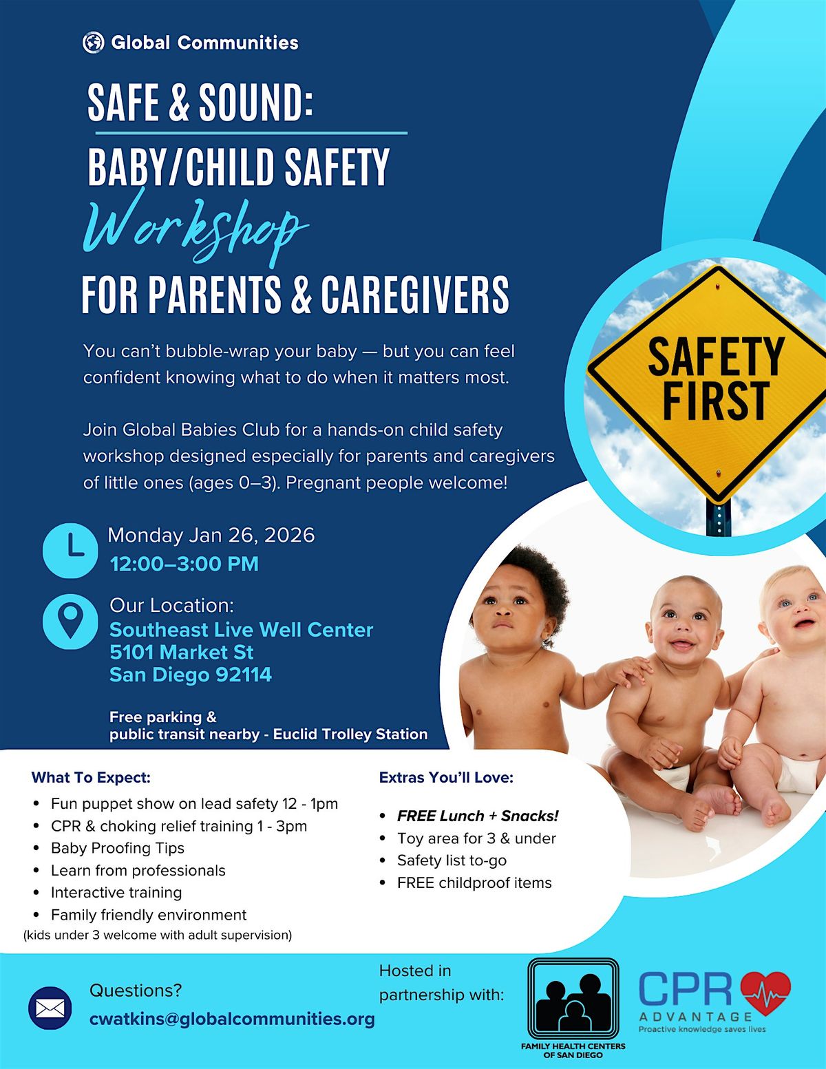 Join Global Babies Club for a hands-on child safety workshop designed especially for parents and caregivers of little ones (ages 0–3). Pregnant people welcome!