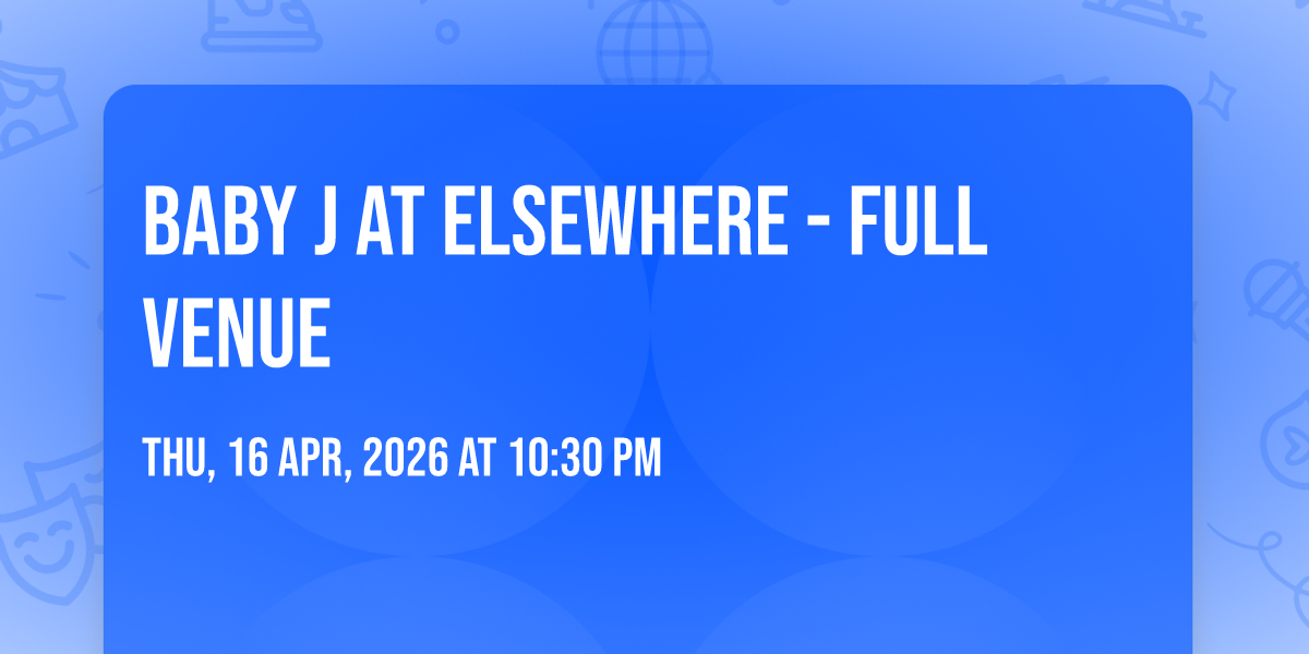 ✨ Embark on an extraordinary journey at Baby J at Elsewhere - Full Venue, where every moment promises to be unforgettable! 🌟 Imagine of transforming Elsewhere - Full Venue in the heart of Brooklyn, NY into a realm of endless possibilities. 📅 Join us on April 16th, 2026 at 10:30 PM for an experience that will challenge your imagination and exceed your expectations. 🎯 This carefully curated event combines the finest elements of entertainment, innovation, and community spirit. Whether you're an adventure seeker, culture enthusiast, or someone looking for unique experiences, this event offers something special for everyone. 🎊 Don't miss this chance to be part of something extraordinary!