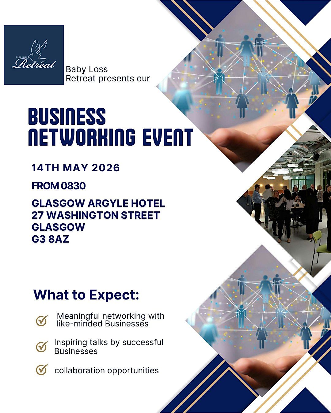 Baby Loss Retreat are hosting their annual Business Networking event at the Glasgow Argyle hotel. A time for Meaningful networking.About this Event