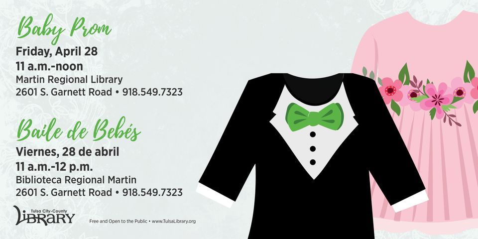 ¡Unase a nosotros para la regresa del baile de bebés! Ven vestido en su ropa elegante o su ropa cómoda. Habrá bocadillos ligeros, música, muchas burbujas y manualidades. Este programa es para las edades de 0 a 5 años, pero toda la familia está invitada.