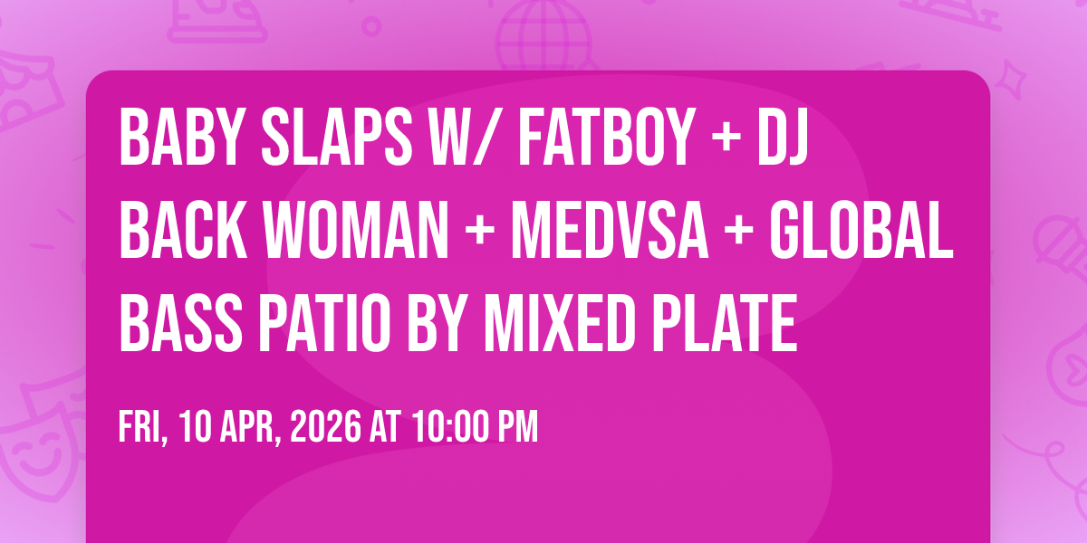 BABY SLAPS returns to bring you your favorite night of Rap, Rre bringing some of the bays best DJs to make sure you get dancing!Sounds by FatBoy + DJ Back Woman + Medvsa Global Bass Patio by Mixed PlateLimited Free w/ RSVP available, dont sleep on it! 21+ | Doors + Music @10:00