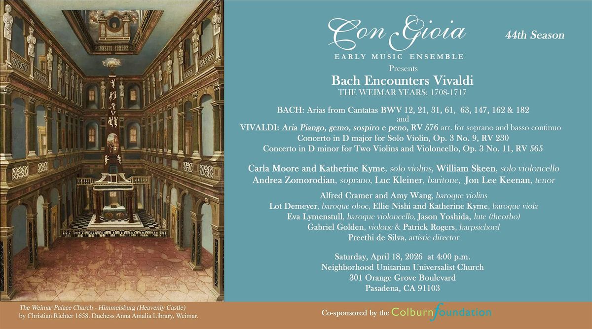Carla Moore and Katherine Kyme, solo violins, William Skeen, solo violoncello