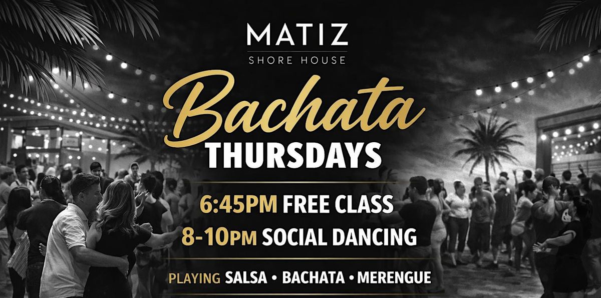 Join us for Bachata Thursdays at Matiz at 6:45 PM free class followed by social dancing from 8–10 PM. Salsa, bachata, and merengue all night