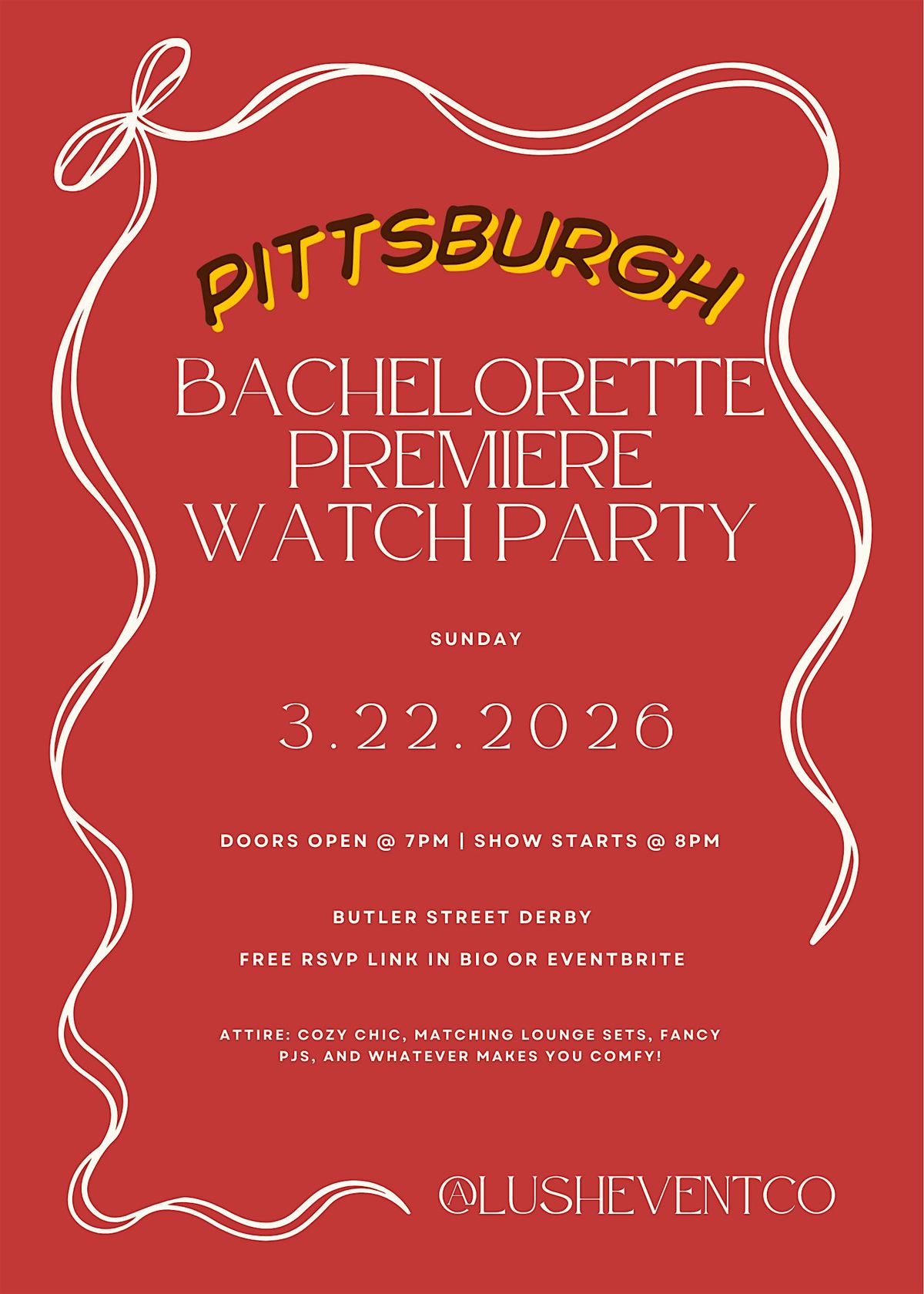 Watch Taylor debut on her once in a lifetime journey as the next Bachelorette! Come ready to mingle & make friends!About this Event