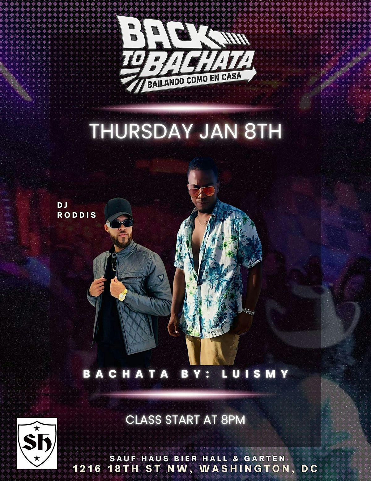 Welcome to the Bachata Night Party at Sauf Haus! Hosted by Back2Bachata Events, this is their latest party celebrating the rythms of Dominican Republic. The night starts with a bachata class at 8:00PM (no partner needed) and then continues with the DJ playing your favorite bachata song, with some merengue, salsa and dembow.