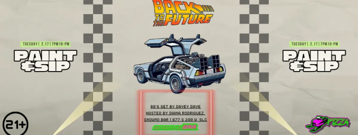 🚗 Back to the Future Paint & Sip 🎨📅 Tuesday 2.17⏰ 7pm–10pm📍 Snowmo Bar❗ 21+ onlyWe’re taking it Back to the Future with an iconic DeLorean canvas at one of the coolest throwback bars in the city. Snowmo Bar is a full-on 80s themed bar with wild neon vibes, retro details, and crazy cool aesthetics that feel like you stepped into a time machine.🎧 80s DJ set by Davey Dave🎤 Hosted by Diana RodriguezYour ticket includes the pre-outlined DeLorean canvas and all paint supplies. This is a self-guided paint session so paint at your own pace, sip something cold, and vibe out to straight 80s classics all night.🍺 Craft beer options from Beer Zombies🍕 Pizza available🍸 Alcohol sold separatelyWhether you’re an 80s baby, a movie nerd, or just here for the vibes… this one’s for you. Grab your crew, paint the DeLorean, and let’s make it feel like 1985 all over again.Great Scott… this one’s gonna be fun 😮💨✨