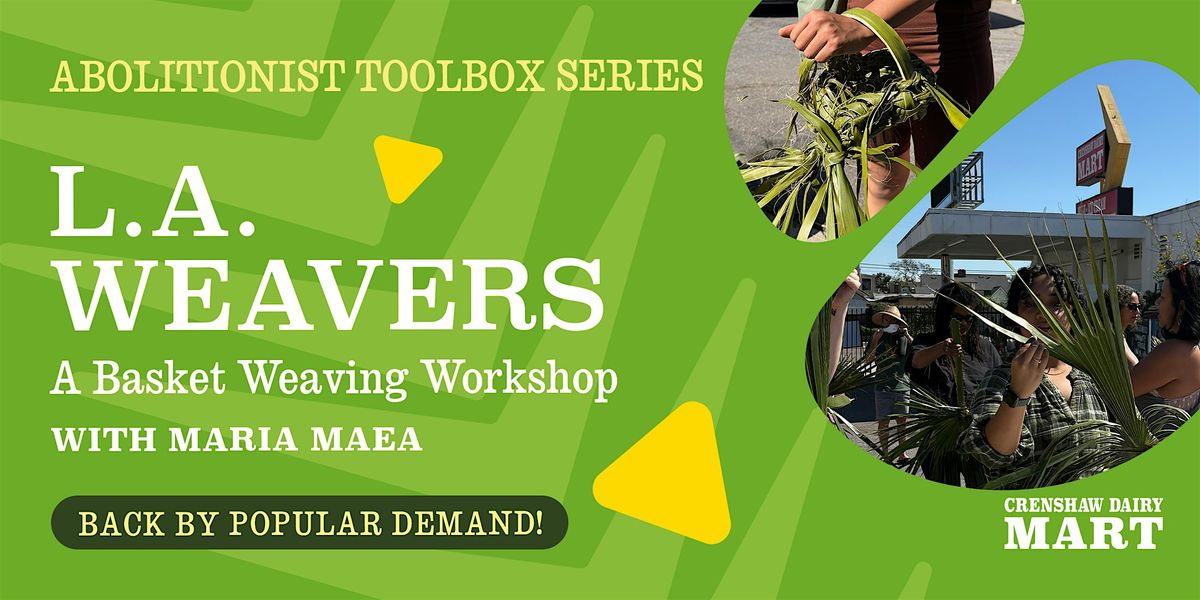 Artist Maria Maea will return on Sunday, May 3rd, to facilitate a palm weaving workshop in collaboration with Crenshaw Dairy Mart. Participants will learn about Los Angeles’ complex history of the iconic palm tree through basket weaving and honorable harvesting practices.