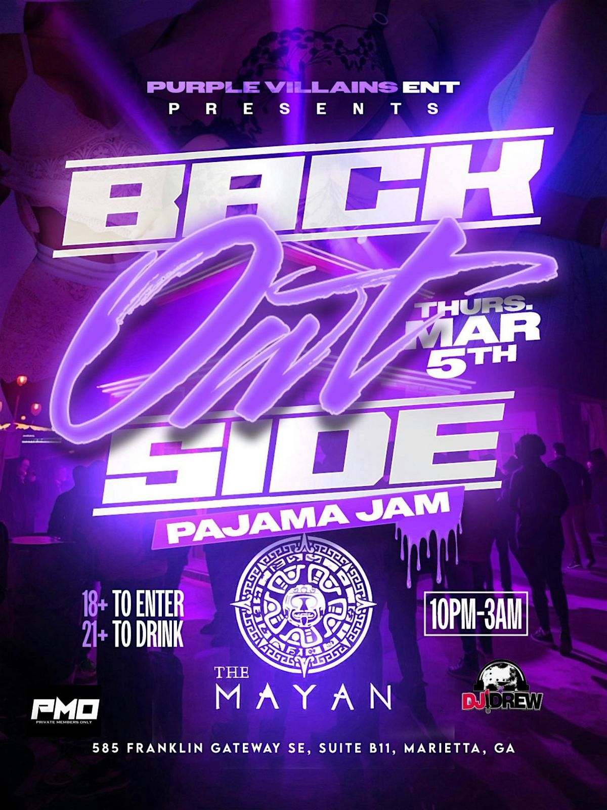 Back Owtside Pajama Party | March 5 • 10PM–3AM • The Mayan, Marietta Ga. Limited sections. Uber highly recommended. 18+ Enter | 21+ To Drink