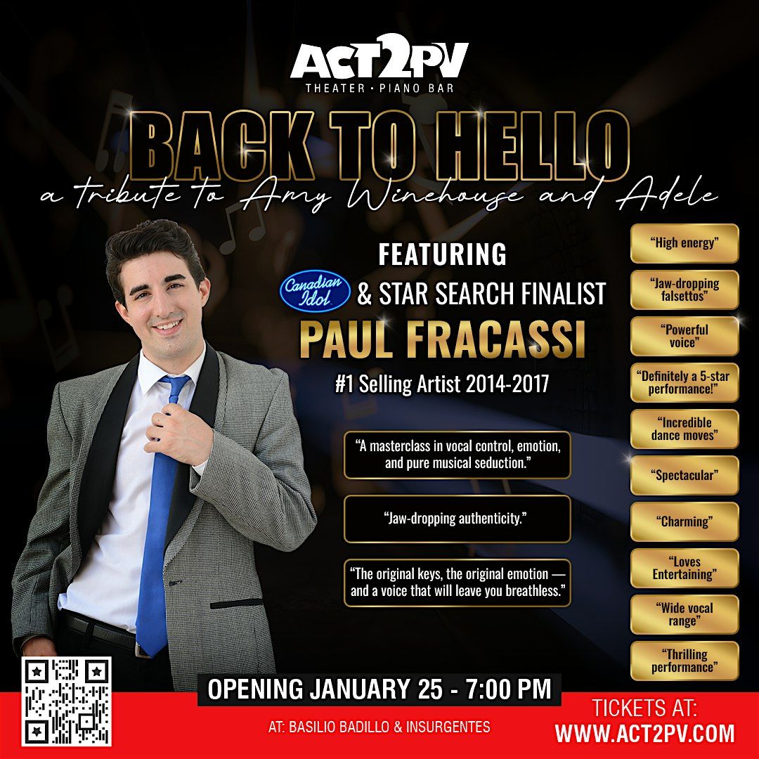 The soul of two icons. The fire of one manTwo of Britain’s greatest voices — Amy Winehouse and Adele — defined a generation with their raw emotion, smoky soul, and unforgettable hits. Now, international recording artist Paul Fracassi brings their music to life in a dazzling, intimate tribute that celebrates the heart, heartbreak, and powerhouse vocals of both icons.