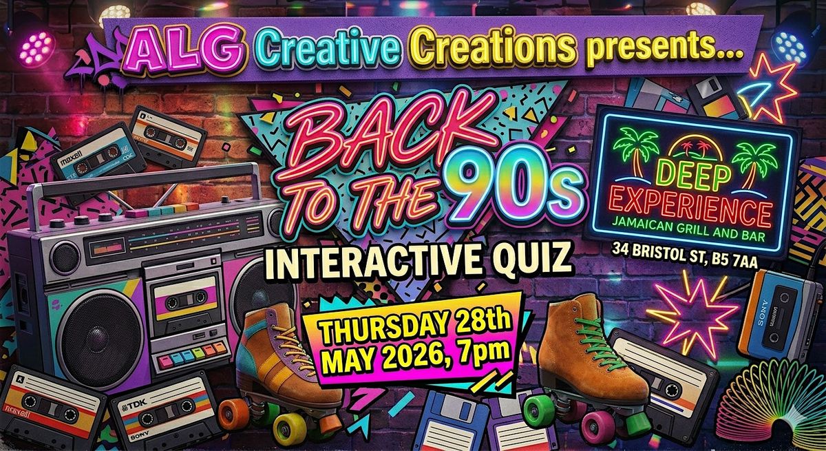 ALG Creative Creations is taking over the Deep Experience Jamaican Bar & Grill for a night that’s all about the rhythm, the style, and the soul of Black Culture, in the memorable decade of the 90s. Whether you’re rolling through with your day-ones, your family, or your most competitive colleauges, get ready for high-octane laughs, legendary trivia, and pure, unfiltered vibes. We aren't just testing your brain cells; we’re testing your energy! We’ve got quiz rounds and challenges to keep you on your toes. This isn't your average quiz—it's a whole experience. Grab your tickets, bring your A-game, and let’s celebrate the culture with fun and laughter!