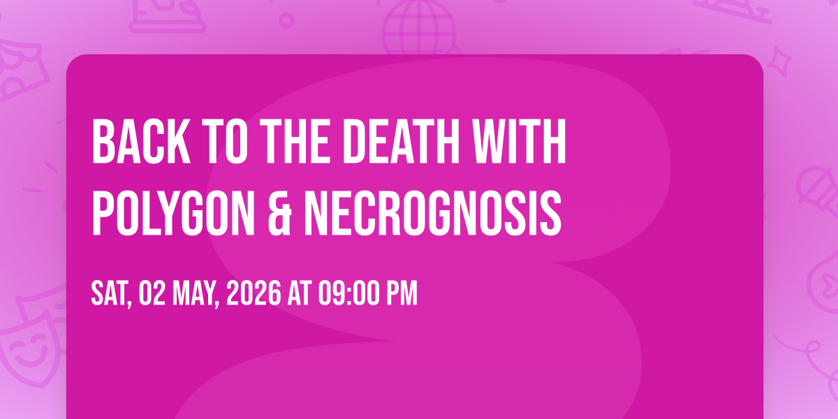 Пловдивската Death Metal машина POLYGON се завръща на своя територия с мощен концерт в клуб UNDER CITY под наслов BACK TO THE DEATH. На 02.05.2026 ще ви очакват с един брутален час и половина сет, подбран от албумите "Гнила душа , мъртва плът", "Моят гняв" и някои кавъри на любими банди! Подготвя се едно наистина ексклузивно шоу, както и лимитиран за концерта мърч!Съпорт в тази задгробна ъндърграунд вечер, ще окаже Thrash/Death Metal месомелачката Necrognosis, които също са Пловдивска банда и ще дадат всичко от себе си, за да ви размажат с тежки рифове.