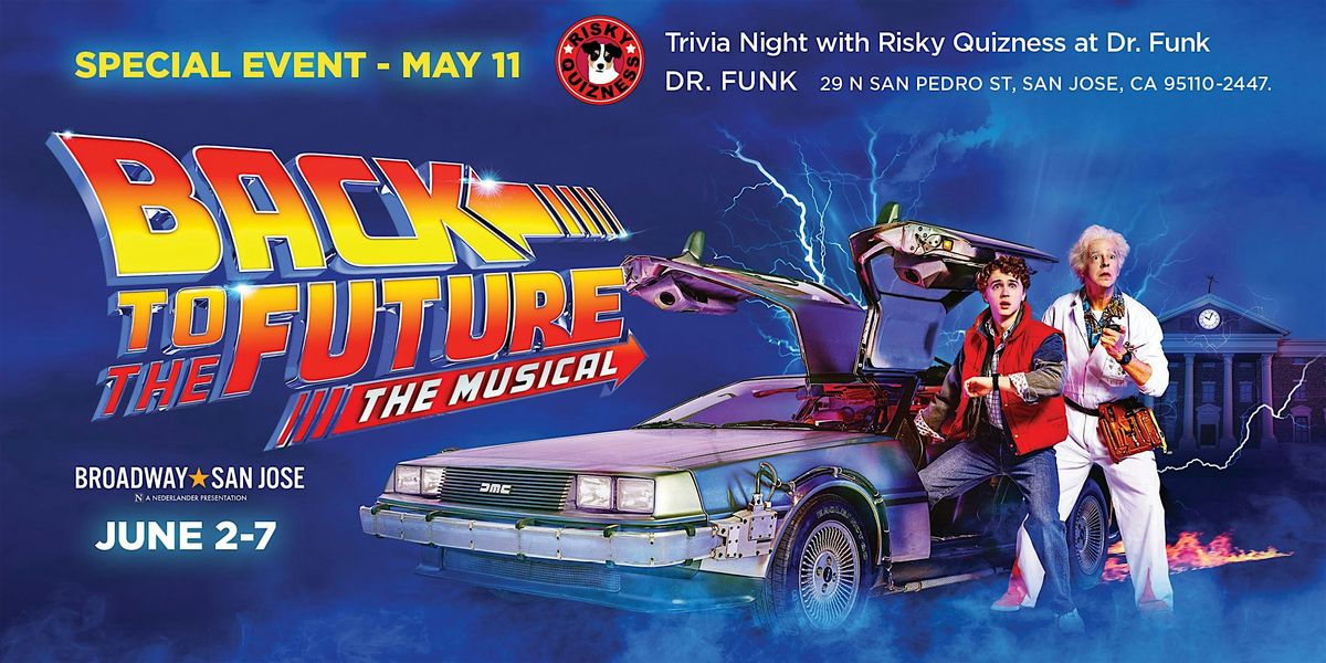 #BackToTheFutureTrivia #RiskyQuizness #DrFunkSanJose #ThisIsHeavy #WhereWereGoingWeDontNeedRoads #MartyMcFlyEnergy #ClocktowerTrivia #HoverboardChampionships #TimeTravelVibes