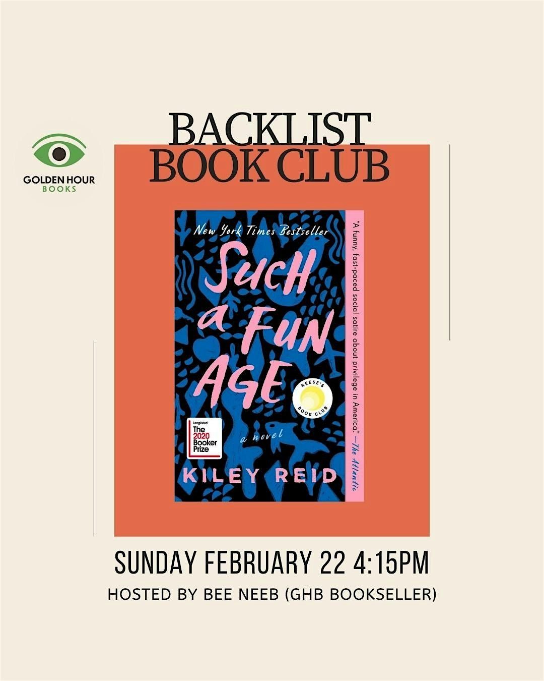 Join us for this month's meeting of the Backlist Book Club at Golden Hour Books.