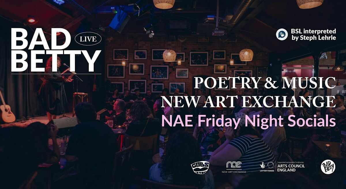 This event is part of NAE's Friday Night Socials. It takes place in the ground-floor gallery space alongside the current exhibition by artist Simeon Barclay. A plant-based menu is available from the community kitchen. NAE has a lift and accessible toilets. The building is fitted with induction loops for enhanced sound. Disabled parking is available on request. Full accessibility info here.