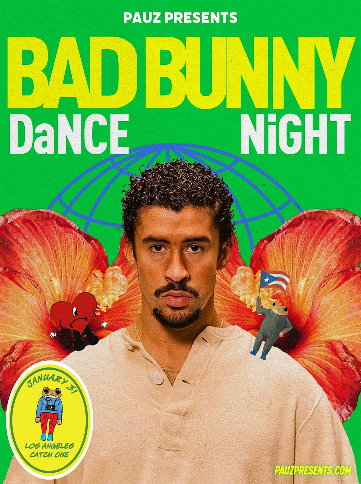 This dance night brings the electrifying, genre-defying energy of Bad Bunny alongside artists like J Balvin, Karol G, Rosalía, and Rauw Alejandro. With a mix of reggaeton, Latin trap, electronic and global hits, this night will have you moving to tracks and remixes that embody dynamic flair and unapologetic spirit.