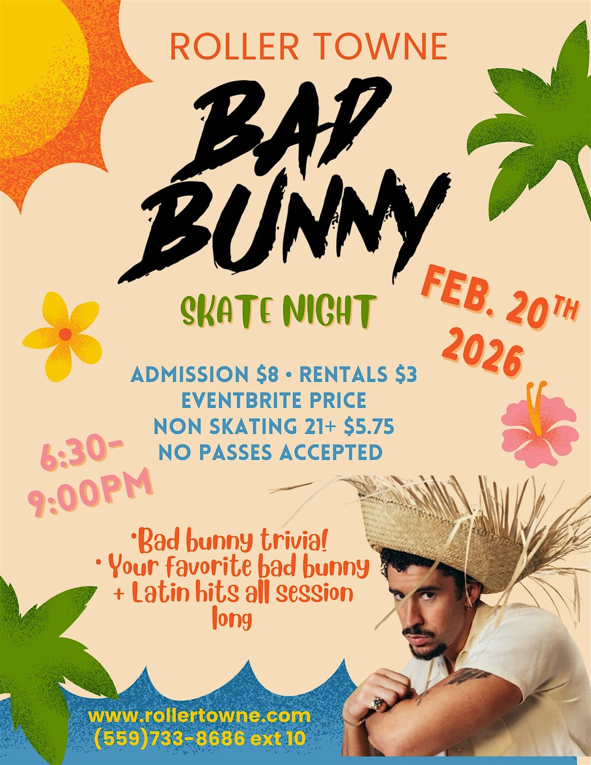 Skate to your favorite Bad Bunny/Latin hits all session long! Bad Bunny trivia during session!